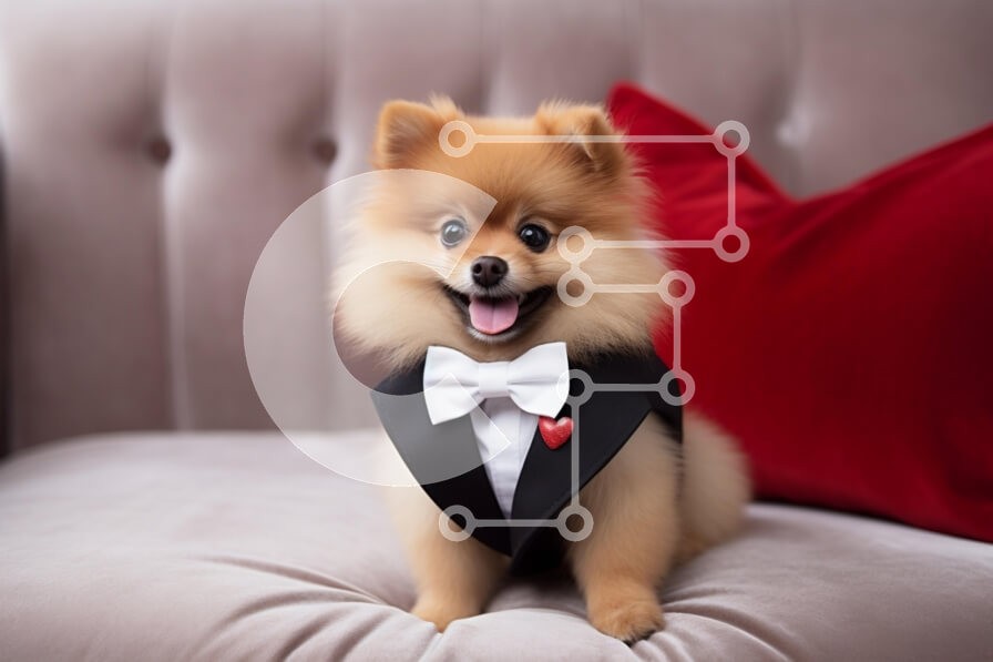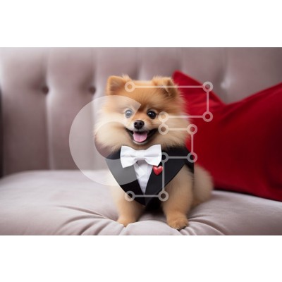 Υπάρχει δυνατότητα προσωποποίησης με δική σας φωτογραφία και προσαρμογής διαστάσεων κατόπιν παραγγελίας. Το συγεκεριμενο Puzzle 10x10 cm – 25 κομμ παρουσιαζει Η εικόνα απεικονίζει έναν αξιολάτρευτο σκύλο Pomeranian ντυμένο με επίσημο σμόκιν, με παπιγιόν και ένα μικρό αξεσουάρ καρδιάς. Ο σκύλος κάθεται σε έναν βελούδινο, ανοιχτόχρωμο καναπέ που περιβάλλεται από διακοσμητικά μαξιλάρια, δίνοντας στη