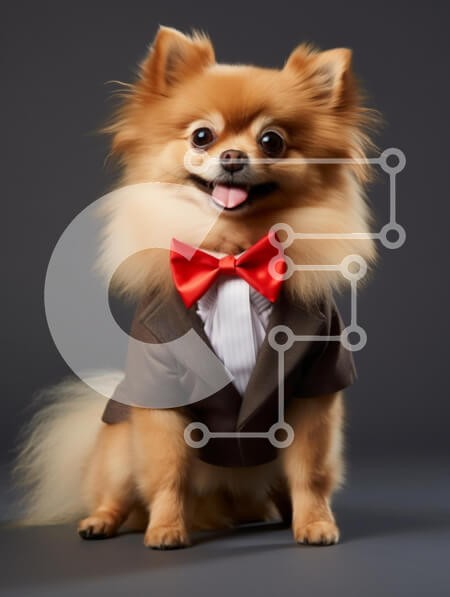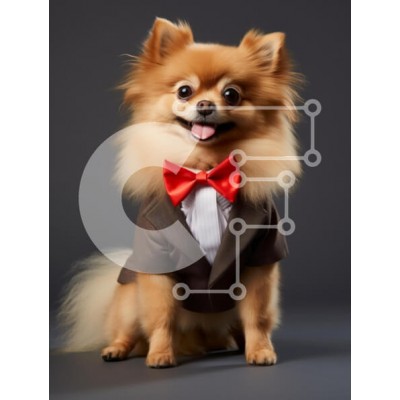 Υπάρχει δυνατότητα προσωποποίησης με δική σας φωτογραφία και προσαρμογής διαστάσεων κατόπιν παραγγελίας. Το συγεκεριμενο Puzzle 10x10 cm – 25 κομμ παρουσιαζει Αυτή η εικόνα παρουσιάζει έναν σκύλο Pomeranian ντυμένο με ένα κομψό σμόκιν με κόκκινο παπιγιόν. Ο σκύλος έχει ένα χνουδωτό χρυσό τρίχωμα και μια χαρούμενη έκφραση, που κάθεται σε ένα ουδέτερο σκοτεινό φόντο. Το σμόκιν προσθέτει μια πινελιά