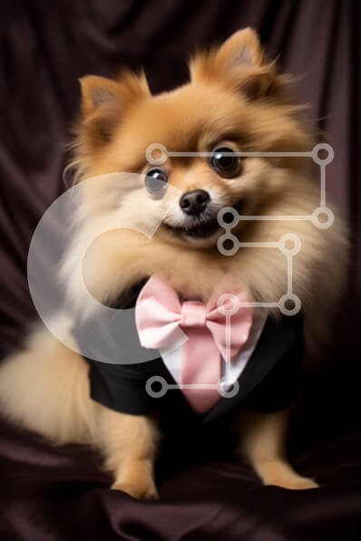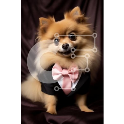 Υπάρχει δυνατότητα προσωποποίησης με δική σας φωτογραφία και προσαρμογής διαστάσεων κατόπιν παραγγελίας. Το συγεκεριμενο Puzzle 10x10 cm – 25 κομμ παρουσιαζει Η εικόνα απεικονίζει έναν αξιολάτρευτο σκύλο Pomeranian ντυμένο με σμόκιν με ροζ παπιγιόν. Ο σκύλος ποζάρει με φόντο ένα σκούρο καφέ φόντο, επιδεικνύοντας τη χνουδωτή γούνα και τα μεγάλα εκφραστικά μάτια του. Η στολή προσθέτει μια γοητευτική