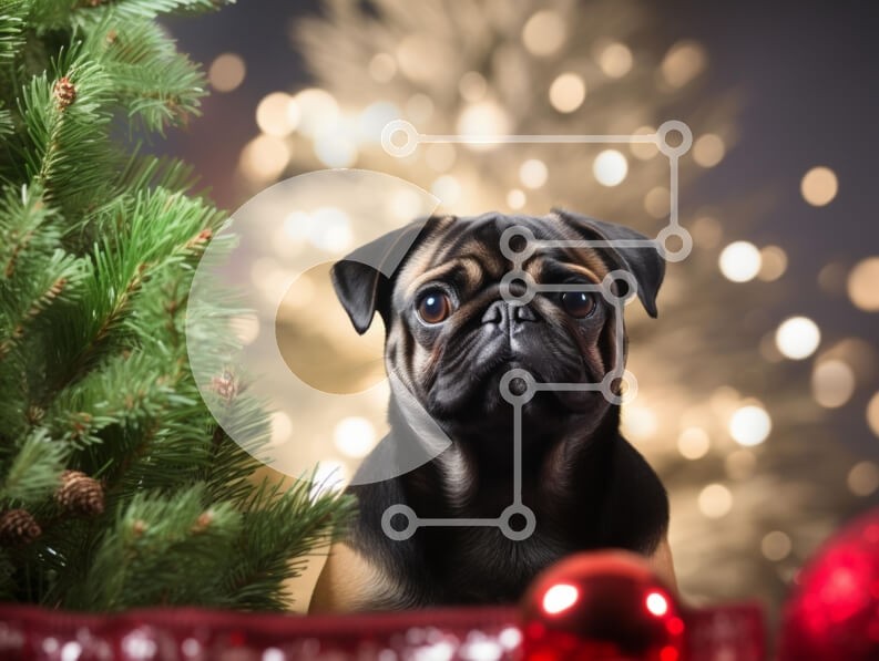 Υπάρχει δυνατότητα προσωποποίησης με δική σας φωτογραφία και προσαρμογής διαστάσεων κατόπιν παραγγελίας. Το συγεκεριμενο Puzzle 10x10 cm – 25 κομμ παρουσιαζει Αυτή η εικόνα παρουσιάζει μια πατημασιά που κάθεται μπροστά από ένα όμορφα στολισμένο χριστουγεννιάτικο δέντρο. Το πατημασιά έχει μια περίεργη έκφραση, με τα μεγάλα, στρογγυλά μάτια του να κοιτούν απευθείας τον θεατή. Το φόντο είναι γεμάτο μ