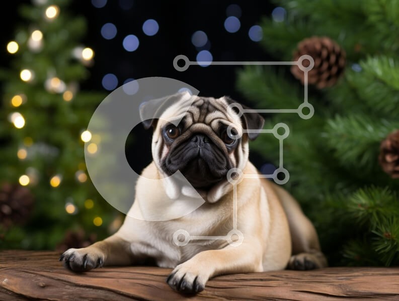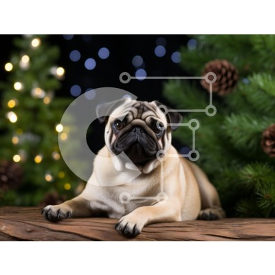 Υπάρχει δυνατότητα προσωποποίησης με δική σας φωτογραφία και προσαρμογής διαστάσεων κατόπιν παραγγελίας. Το συγεκεριμενο Puzzle 10x10 cm – 25 κομμ παρουσιαζει Αυτή η εικόνα παρουσιάζει ένα σκυλί πατημασιά ξαπλωμένο σε μια ξύλινη επιφάνεια, με θολό φόντο από χριστουγεννιάτικα δέντρα στολισμένα με φωτάκια και κουκουνάρια. Η πατημασιά έχει ένα χαρακτηριστικό ζαρωμένο πρόσωπο και μεγάλα μάτια, που απο