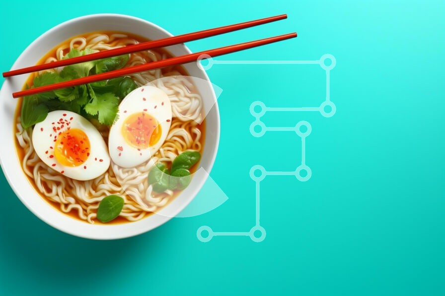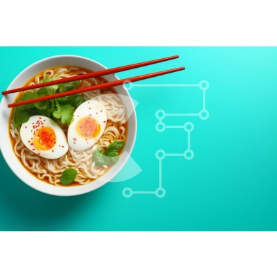 Υπάρχει δυνατότητα προσωποποίησης με δική σας φωτογραφία και προσαρμογής διαστάσεων κατόπιν παραγγελίας. Το συγεκεριμενο puzzle παρουσιαζει Αυτή η εικόνα παρουσιάζει ένα μπολ με νουντλς ramen με δύο μαλακά βραστά αυγά, φρέσκο κόλιανδρο και μικρά πράσινα φύλλα, σερβιρισμένα με ένα ζευγάρι κόκκινα ξυλάκια. Το ζωντανό τιρκουάζ φόντο κάνει τα χρώματα του πιάτου να ξεχωρίζουν, αναδεικνύοντας τον πλούσιο ζωμό και τα δ