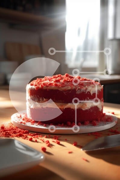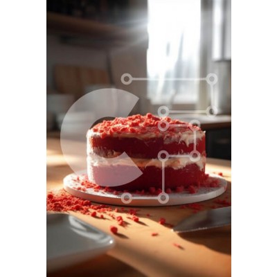 Υπάρχει δυνατότητα προσωποποίησης με δική σας φωτογραφία και προσαρμογής διαστάσεων κατόπιν παραγγελίας. Το συγεκεριμενο puzzle παρουσιαζει Αυτή η εικόνα παρουσιάζει ένα κόκκινο βελούδινο κέικ με κρέμα τυριού και ζάχαρη άχνη σε ένα ξύλινο τραπέζι με το φως του ήλιου να περνά μέσα από ένα παράθυρο. Ένα μαχαίρι και ένα πιάτο είναι επίσης ορατά στο τραπέζι. Ιδανικό για ιστολόγια τροφίμων, ιστοτόπους συνταγών ή άλλα έ