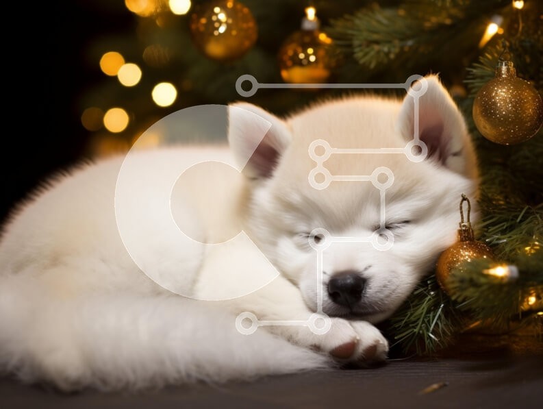 Υπάρχει δυνατότητα προσωποποίησης με δική σας φωτογραφία και προσαρμογής διαστάσεων κατόπιν παραγγελίας. Το συγεκεριμενο Puzzle 10x10 cm – 25 κομμ παρουσιαζει Ένα χνουδωτό κουτάβι κοιμάται ήρεμα κοντά σε ένα όμορφα στολισμένο χριστουγεννιάτικο δέντρο. Το κουτάβι έχει λευκό τρίχωμα με ανοιχτόχρωμα μπαλώματα κρέμας και είναι κουλουριασμένο άνετα, με κλειστά μάτια. Το χριστουγεννιάτικο δέντρο στολίζε