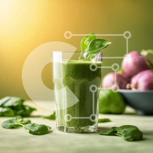 Υπάρχει δυνατότητα προσωποποίησης με δική σας φωτογραφία και προσαρμογής διαστάσεων κατόπιν παραγγελίας. Το συγεκεριμενο puzzle παρουσιαζει Αυτή η εικόνα παρουσιάζει ένα ποτήρι πράσινο smoothie με φύλλα σπανακιού να επιπλέουν από πάνω. Το σπανάκι είναι ένα πράσινο φυλλώδες λαχανικό γνωστό για την υψηλή διατροφική του αξία και είναι πλούσια πηγή βιταμινών, μετάλλων και αντιοξειδωτικών. Το smoothie περιέχει επίσης ά