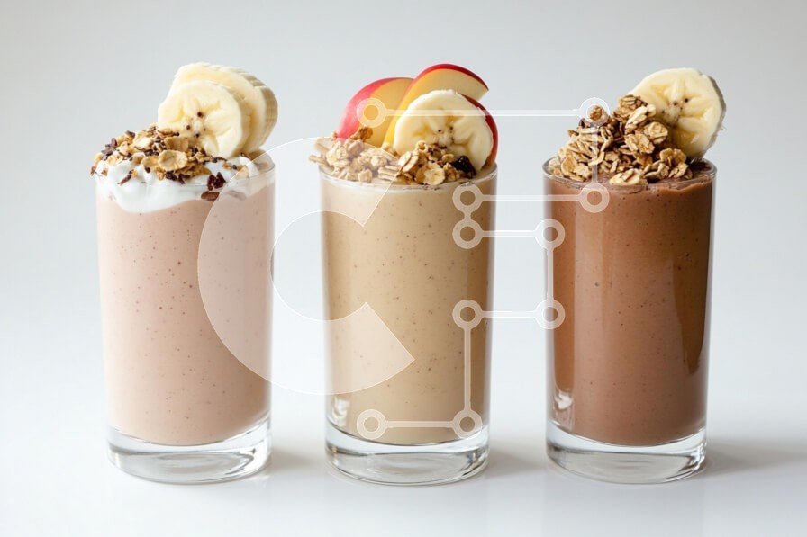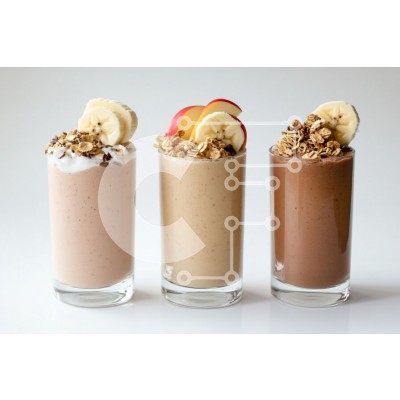 Υπάρχει δυνατότητα προσωποποίησης με δική σας φωτογραφία και προσαρμογής διαστάσεων κατόπιν παραγγελίας. Το συγεκεριμενο puzzle παρουσιαζει Η εικόνα παρουσιάζει τρία νόστιμα smoothies που παρουσιάζονται σε καθαρά ποτήρια, το καθένα με διάφορες γαρνιτούρες. Το αριστερό smoothie έχει ανοιχτό ροζ απόχρωση, διακοσμημένο με φέτες μπανάνας και γκρανόλα. Το μεσαίο smoothie είναι μπεζ, με φέτες μήλου από πάνω μαζί με γκρα