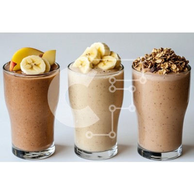 Υπάρχει δυνατότητα προσωποποίησης με δική σας φωτογραφία και προσαρμογής διαστάσεων κατόπιν παραγγελίας. Το συγεκεριμενο puzzle παρουσιαζει Η εικόνα παρουσιάζει τρία νόστιμα smoothies σε καθαρά ποτήρια, το καθένα με διαφορετικές γαρνιτούρες. Το αριστερό smoothie είναι με γεύση σοκολάτας, στολισμένο με φέτες μπανάνας και ένα κομμάτι κίτρινο μήλο. Το μεσαίο smoothie φαίνεται κρεμώδες και με γεύση μπανάνας, με φέτες