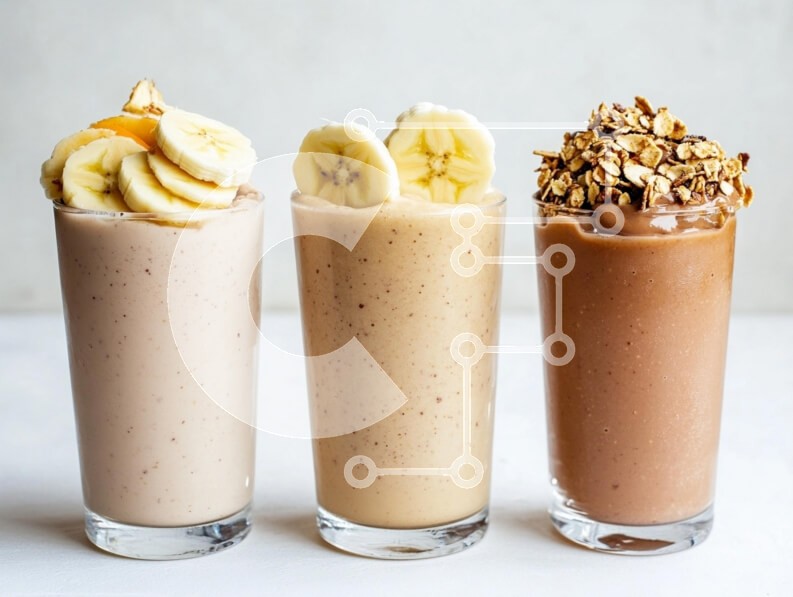 Υπάρχει δυνατότητα προσωποποίησης με δική σας φωτογραφία και προσαρμογής διαστάσεων κατόπιν παραγγελίας. Το συγεκεριμενο puzzle παρουσιαζει Η εικόνα παρουσιάζει τρία νόστιμα smoothies που σερβίρονται σε ψηλά ποτήρια. Το πρώτο smoothie στα αριστερά είναι σε ανοιχτό μπεζ χρώμα, με φέτες μπανάνας, ενώ το μεσαίο smoothie είναι ελαφρώς πιο σκούρο και έχει κρεμώδη υφή. Το πιο σωστό smoothie έχει χρώμα σοκολάτας, στολισμ