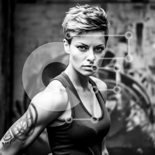 | Όνομα Προϊόντος | Σετ των 2 Intra Συλλεκτικό Ξύλινο Παζλ Plywood 4mm - Sporty and edgy look: Γυναίκα με κοντά μαλλιά και τατουάζ μπροστά στον τοίχο του γκράφιτι Σε Ξύλινο Κουτί - Διαστάσεις: 10x10 cm – 25 κομμάτια |