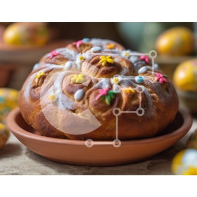 Υπάρχει δυνατότητα προσωποποίησης με δική σας φωτογραφία και προσαρμογής διαστάσεων κατόπιν παραγγελίας. Το συγεκεριμενο puzzle παρουσιαζει Η εικόνα καταγράφει μια εορταστική σκηνή με ένα πολύχρωμο κέικ sprinkle bundt τοποθετημένο σε ένα οβάλ σχήματος κεραμικό μπολ. Γύρω από το κέικ υπάρχουν πολλά πασχαλινά αυγά, που συμβάλλουν στη χαρούμενη ατμόσφαιρα του σκηνικού. Ένα μοναδικό puzzle που συνδυάζει ποιότητα, αισ