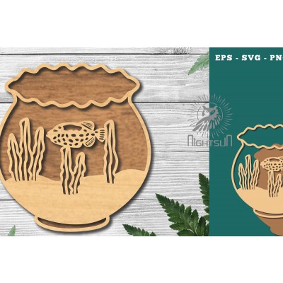 Σετ των 2 Intra απο ξύλο plywood Χρώμα wenge 3mm-4mm πάχος - Ψάρια σε μπολ Διακόσμηση κοπής με λέιζερ 1 Δίασταση 20x20 cm INTRAFABR-31922227