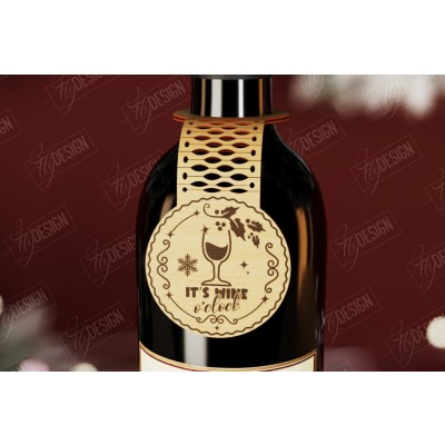 Σετ των 2 Intra απο ξύλο plywood Χρώμα wenge 3mm-4mm πάχος - Χριστουγεννιάτικο μπουκάλι κρασιού Ετικέτα | Δώρο διακοπών Δίασταση 15x15 cm INTRAFABR-105419268