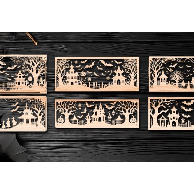 Σετ των 2 Intra απο ξύλο plywood Χρώμα wenge 3mm-4mm πάχος - Αποκριάτικο αποκοπής με λέιζερ Δίασταση 15x15 cm INTRAFABR-115498619