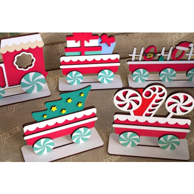Σετ των 2 Intra απο ξύλο plywood Χρώμα wenge 3mm-4mm πάχος - Χριστουγεννιάτικο Τρένο | Διακοπές | Το τρένο του Άη Βασίλη Δίασταση 15x15 cm INTRAFABR-79576846