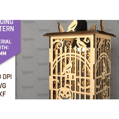 Σετ των 2 Intra απο ξύλο plywood Χρώμα wenge 3mm-4mm πάχος - Αποκριάτικο Κρεμαστό Φανάρι με λέιζερ Δίασταση 15x15 cm INTRAFABR-91209158