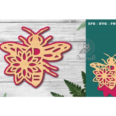 Σετ των 2 Intra απο ξύλο plywood Χρώμα wenge 3mm-4mm πάχος - Διακόσμηση κοπής με λέιζερ μελισσών λουλουδιών 3 Δίασταση 20x20 cm INTRAFABR-114429244