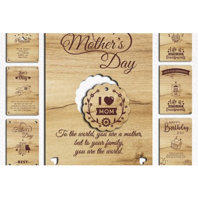 Πακέτο ευχετήριων καρτών Πρόκειται για ψηφιακό σχεδίου, ιδανικό για κοπή με ή plotter. Κατασκευασμένο απο Ξύλο από plywood [3mm ή 4mm], κομμένο με ακρίβεια στην βιοτεχνία Intrahome . Το φυσικό ξύλο προσφέρει μια κομψή, αυθεντική υφή και μπορεί εύκολα να βαφτεί ή να διακοσμηθεί σύμφωνα με το προσωπικό σας γούστο. Ελληνική παραγωγή – Κατασκευάζεται στην Ελλάδα με προσοχή στη λεπτομέρεια και υψηλές προδιαγραφές ποιότητας. ✔️ Υλικό: Plywood υψηλής ποιότητας ✔️ Διατίθεται σε πάχος 3mm ή 4mm ✔️ Ελαφρύ, ανθεκτικό και εύκολο στη χρήση ✔️ Ιδανικό για βάψιμο, χάραξη, κόλληση και χειροτεχνίες ✔️ Κατάλληλο για μπομπονιέρες, διακόσμηση, δώρα και DIY projects ✅ Εγγύηση 2 ετών – Σε περίπτωση σπασίματος, η αντικατάσταση γίνεται άμεσα, χάρη στην τοπική ελληνική παραγωγή μας. Ιδανικό για δημιουργικούς ανθρώπους που αγαπούν το DIY. Μπορεί να γίνει ξεχωριστό δώρο με προσωπικό χαρακτήρα. Φέρνει “χειροποίητη” αισθητική στη διακόσμηση. -files- Ελληνική χειροποίητη παραγωγή → στηρίζετε τοπικούς