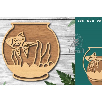 Σετ των 2 Intra απο ξύλο plywood Χρώμα wenge 3mm-4mm πάχος - Ψάρια σε μπολ Διακόσμηση κοπής με λέιζερ 6 Δίασταση 20x20 cm INTRAFABR-111384503