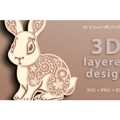 Όνομα Προϊόντος Σετ των 2 Intra απο ξύλο plywood Χρώμα wenge 3mm-4mm πάχος - Floral Bunny 3D Layered Cut Δίασταση 15x15 cm INTRAFABR-85023153