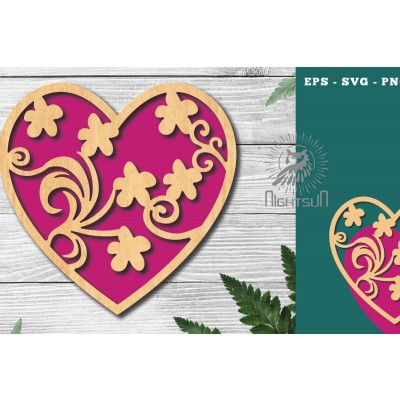 Όνομα Προϊόντος Σετ των 2 Intra απο ξύλο plywood Χρώμα wenge 3mm-4mm πάχος - Floral Heart Decoration 4 Δίασταση 20x20 cm INTRAFABR-120689428
