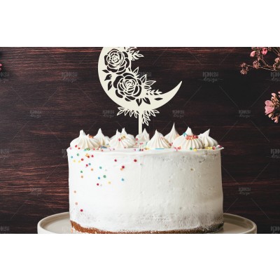 Όνομα Προϊόντος Σετ των 2 Intra απο ξύλο plywood Χρώμα wenge 3mm-4mm πάχος - Floral Moon Cake Topper Δίασταση 20x20 cm INTRAFABR-34805625