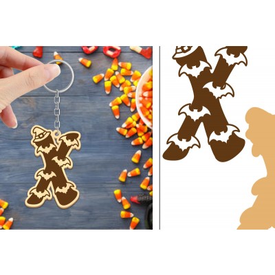 Σετ των 2 Intra απο ξύλο plywood Χρώμα wenge 3mm-4mm πάχος - με μπρελόκ Halloween Aphabet Δίασταση 4x4 cm INTRAFABR-14989331
