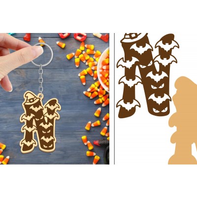 Σετ των 2 Intra απο ξύλο plywood Χρώμα wenge 3mm-4mm πάχος - με μπρελόκ Halloween Aphabet Δίασταση 4x4 cm INTRAFABR-17728467