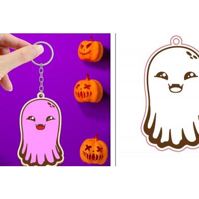 Κριτικάρετε το(τα): Σετ των 2 Intra απο ξύλο plywood Χρώμα wenge 3mm-4mm πάχος - Halloween Cute Ghost Keychain Δίασταση 4x4 cm INTRAFABR-9435263