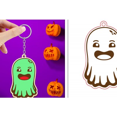 Κριτικάρετε το(τα): Σετ των 2 Intra απο ξύλο plywood Χρώμα wenge 3mm-4mm πάχος - Halloween Cute Ghost Keychain Δίασταση 4x4 cm INTRAFABR-9746896