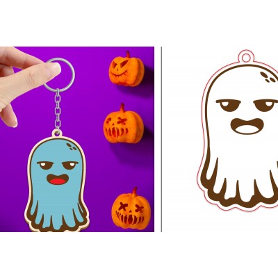 Κριτικάρετε το(τα): Σετ των 2 Intra απο ξύλο plywood Χρώμα wenge 3mm-4mm πάχος - Halloween Cute Ghost Keychain Δίασταση 4x4 cm INTRAFABR-9776353