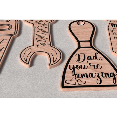 Keychain για την Ημέρα του Πατέρα Πρόκειται για ψηφιακό σχεδίου, ιδανικό για κοπή με ή plotter. Κατασκευασμένο απο Ξύλο από plywood [3mm ή 4mm], κομμένο με ακρίβεια στην βιοτεχνία Intrahome . Το φυσικό ξύλο προσφέρει μια κομψή, αυθεντική υφή και μπορεί εύκολα να βαφτεί ή να διακοσμηθεί σύμφωνα με το προσωπικό σας γούστο. Ελληνική παραγωγή – Κατασκευάζεται στην Ελλάδα με προσοχή στη λεπτομέρεια και υψηλές προδιαγραφές ποιότητας. ✔️ Υλικό: Plywood υψηλής ποιότητας ✔️ Διατίθεται σε πάχος 3mm ή 4mm ✔️ Ελαφρύ, ανθεκτικό και εύκολο στη χρήση ✔️ Ιδανικό για βάψιμο, χάραξη, κόλληση και χειροτεχνίες ✔️ Κατάλληλο για μπομπονιέρες, διακόσμηση, δώρα και DIY projects ✅ Εγγύηση 2 ετών – Σε περίπτωση σπασίματος, η αντικατάσταση γίνεται άμεσα, χάρη στην τοπική ελληνική παραγωγή μας. Ιδανικό για δημιουργικούς ανθρώπους που αγαπούν το DIY. Μπορεί να γίνει ξεχωριστό δώρο με προσωπικό χαρακτήρα. Φέρνει “χειροποίητη” αισθητική στη διακόσμηση. -files- Ελληνική χειροποίητη παραγωγή → στηρίζετε