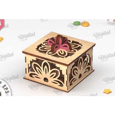Διακοσμητικό Ξύλινο Κουτί Δώρου Κοπή Laser Πρόκειται για ψηφιακό σχεδίου, ιδανικό για κοπή με ή plotter. Κατασκευασμένο απο Ξύλο από plywood [3mm ή 4mm], κομμένο με ακρίβεια στην βιοτεχνία Intrahome . Το φυσικό ξύλο προσφέρει μια κομψή, αυθεντική υφή και μπορεί εύκολα να βαφτεί ή να διακοσμηθεί σύμφωνα με το προσωπικό σας γούστο. Ελληνική παραγωγή – Κατασκευάζεται στην Ελλάδα με προσοχή στη λεπτομέρεια και υψηλές προδιαγραφές ποιότητας. ✔️ Υλικό: Plywood υψηλής ποιότητας ✔️ Διατίθεται σε πάχος 3mm ή 4mm ✔️ Ελαφρύ, ανθεκτικό και εύκολο στη χρήση ✔️ Ιδανικό για βάψιμο, χάραξη, κόλληση και χειροτεχνίες ✔️ Κατάλληλο για μπομπονιέρες, διακόσμηση, δώρα και DIY projects ✅ Εγγύηση 2 ετών – Σε περίπτωση σπασίματος, η αντικατάσταση γίνεται άμεσα, χάρη στην τοπική ελληνική παραγωγή μας. Ιδανικό για δημιουργικούς ανθρώπους που αγαπούν το DIY. Μπορεί να γίνει ξεχωριστό δώρο με προσωπικό χαρακτήρα. Φέρνει “χειροποίητη” αισθητική στη διακόσμηση. -files- Ελληνική χειροποίητη παραγωγή → σ