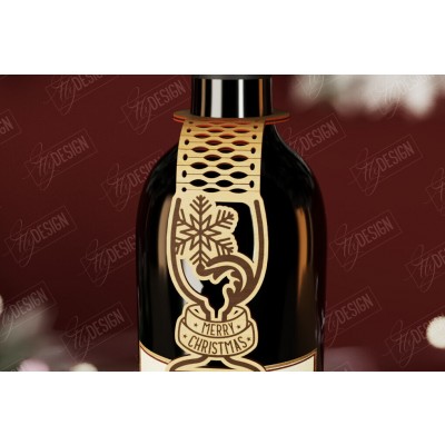 Σετ των 3 Intra απο ξύλο plywood 3mm-4mm πάχος - Χριστουγεννιάτικο μπουκάλι κρασιού Ετικέτα | Δώρο διακοπών Δίασταση 15x15 cm INTRAFABR-111361017