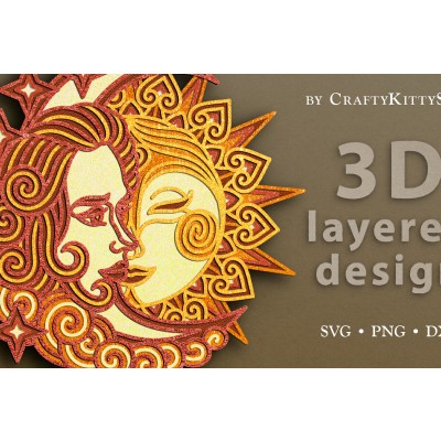 Όνομα Προϊόντος Σετ των 3 Intra απο ξύλο plywood 3mm-4mm πάχος αποκοπής 3D Layered Boho Sun & Moon Δίασταση 7x7 cm INTRAFABR-62388515