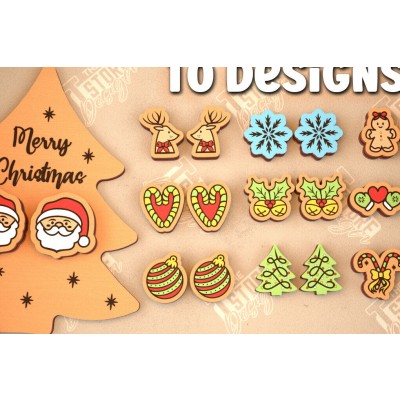 Σετ των 3 Intra απο ξύλο plywood 3mm-4mm πάχος με χριστουγεννιάτικα σκουλαρίκια | Κοσμήματα Δίασταση 3x3 cm INTRAFABR-105341584