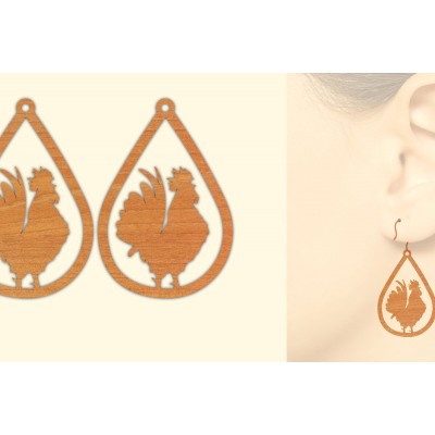 Σετ των 3 Intra απο ξύλο plywood 3mm-4mm πάχος Ξύλινα σκουλαρίκια κότας με λέιζερ Δίασταση 3x3 cm INTRAFABR-66455829