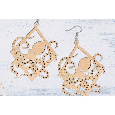 Σετ των 3 Intra απο ξύλο plywood 3mm-4mm πάχος - Σκουλαρίκι κομμένο με λέιζερ, σκουλαρίκι χταπόδι Δίασταση 3x3 cm INTRAFABR-70546566