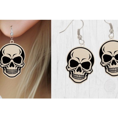 Σετ των 3 Intra απο ξύλο plywood 3mm-4mm πάχος - Αποκριάτικο σκουλαρίκι με λέιζερ κομμένο , κρανίο Δίασταση 3x3 cm INTRAFABR-77017297
