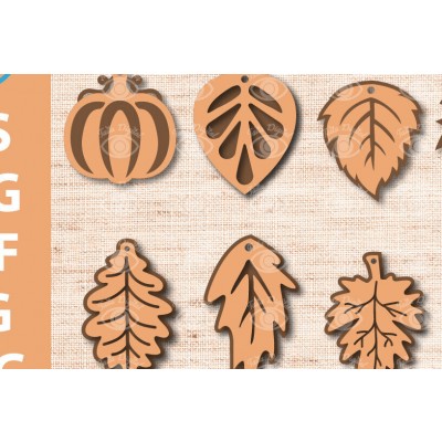 Σετ των 3 Intra απο ξύλο plywood 3mm-4mm πάχος - Σχεδιασμός φθινοπωρινού σκουλαρίκια για την ημέρα των ευχαριστιών Δίασταση 3x3 cm INTRAFABR-77538236