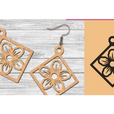 Σετ των 3 Intra απο ξύλο plywood 3mm-4mm πάχος - Σκουλαρίκια κομμένα με λέιζερ λουλουδιών 4 Δίασταση 3x3 cm INTRAFABR-105776821