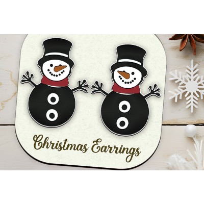 Σετ των 3 Intra απο ξύλο plywood 3mm-4mm πάχος Χριστουγεννιάτικα σκουλαρίκια κομμένα με λέιζερ χιονάνθρωπος. Δίασταση 4x4 cm INTRAFABR-110012086