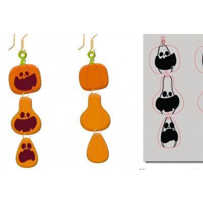 Σετ των 3 Intra απο ξύλο plywood 3mm-4mm πάχος – Κολοκύθα αποκριάτικο σκουλαρίκι Δίασταση 5x5 cm INTRAFABR-101152009