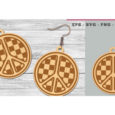 Σετ των 3 Intra απο ξύλο plywood 3mm-4mm πάχος – Σκουλαρίκια κοπής λέιζερ με σήμα ειρήνης Δίασταση 5x5 cm INTRAFABR-106401455