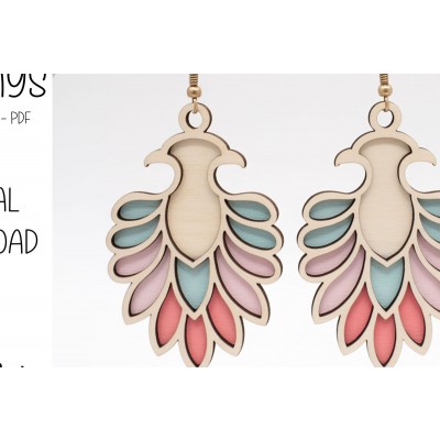 Σετ των 3 Intra απο ξύλο plywood 3mm-4mm πάχος – Σκουλαρίκια με πούπουλα παγωνιού Δίασταση 5x5 cm INTRAFABR-123009339