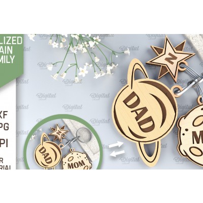 Σετ των 3 Intra απο ξύλο plywood 3mm-4mm πάχος – Εξατομικευμένη Οικογενειακή Κοπή Λέιζερ Μπρελόκ Δίασταση 5x5 cm INTRAFABR-96002008