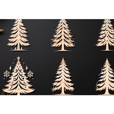 Σετ των 3 Intra απο ξύλο plywood 3mm-4mm πάχος - Χριστουγεννιάτικο δέντρο με λέιζερ στολίδια Δίασταση 6x6 cm INTRAFABR-107947593