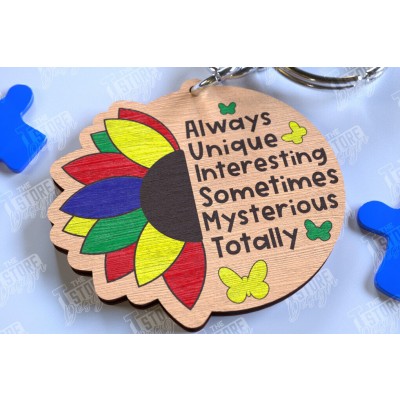 Σετ των 3 Intra απο ξύλο plywood 3mm-4mm πάχος Μπρελόκ Ευαισθητοποίησης για τον Αυτισμό | Σημάδι αυτισμού Δίασταση 6x6 cm INTRAFABR-113927134