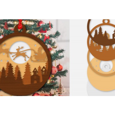 Σετ των 3 Intra απο ξύλο plywood 3mm-4mm πάχος Χριστουγεννιάτικο έλκηθρο στολίδι με λέιζερ Δίασταση 8x8 cm INTRAFABR-110141290