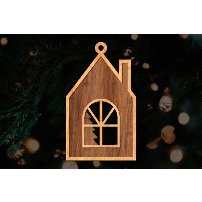 Σετ των 3 Intra απο ξύλο plywood 3mm-4mm πάχος Χριστουγεννιάτικο Στολίδι Κτίριο κομμένο Δίασταση 8x8 cm INTRAFABR-111352581