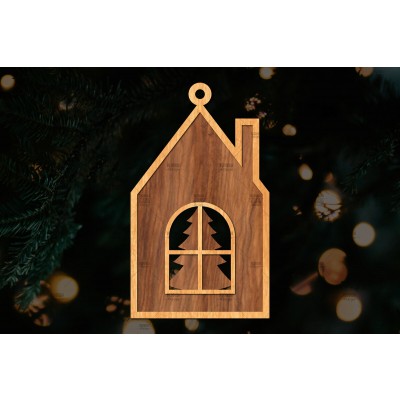 Σετ των 3 Intra απο ξύλο plywood 3mm-4mm πάχος Χριστουγεννιάτικο Στολίδι Κτίριο κομμένο Δίασταση 8x8 cm INTRAFABR-111352623